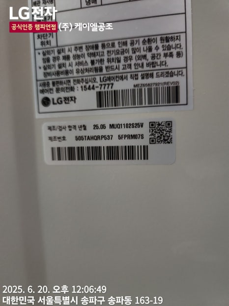 안녕하세요, LG공식인증전문점 케이엘공조입니다 :)