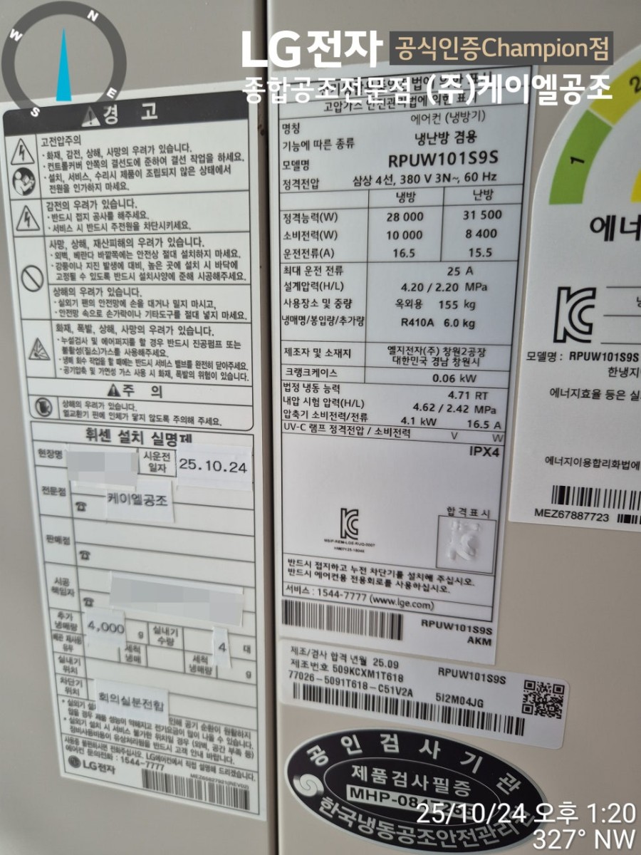 안녕하세요, LG공식인증전문점 케이엘공조입니다 :)
